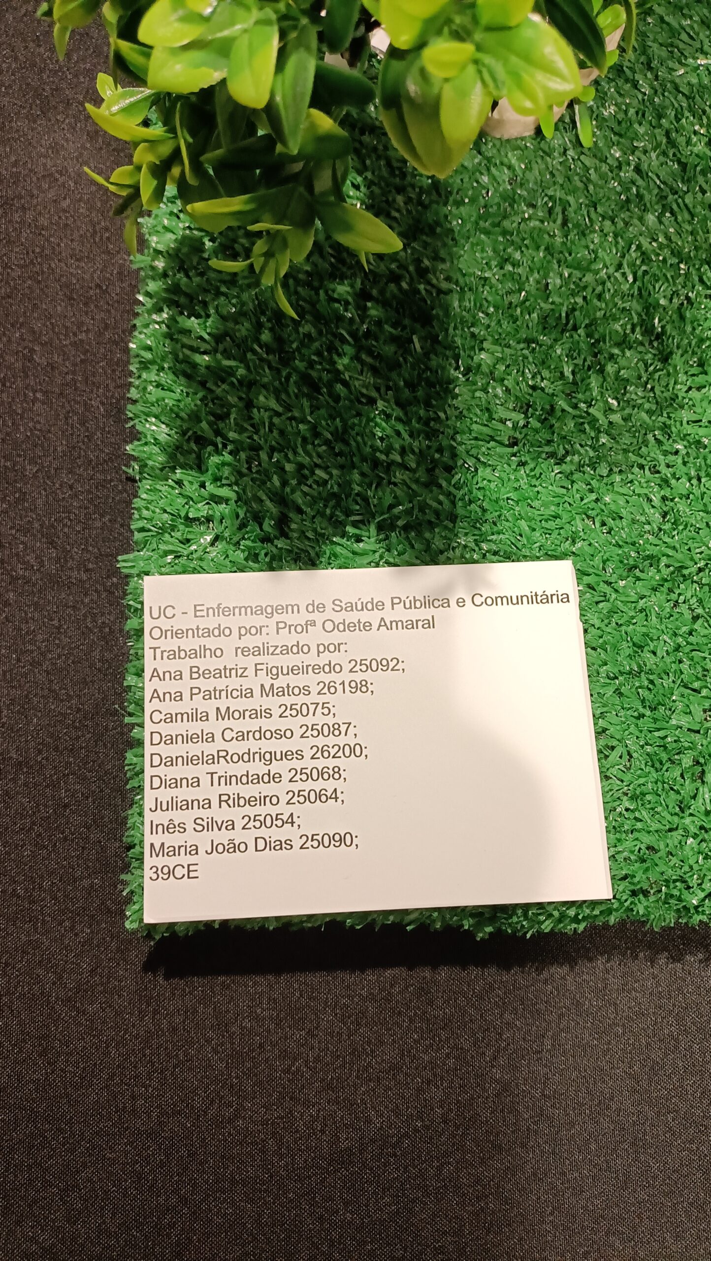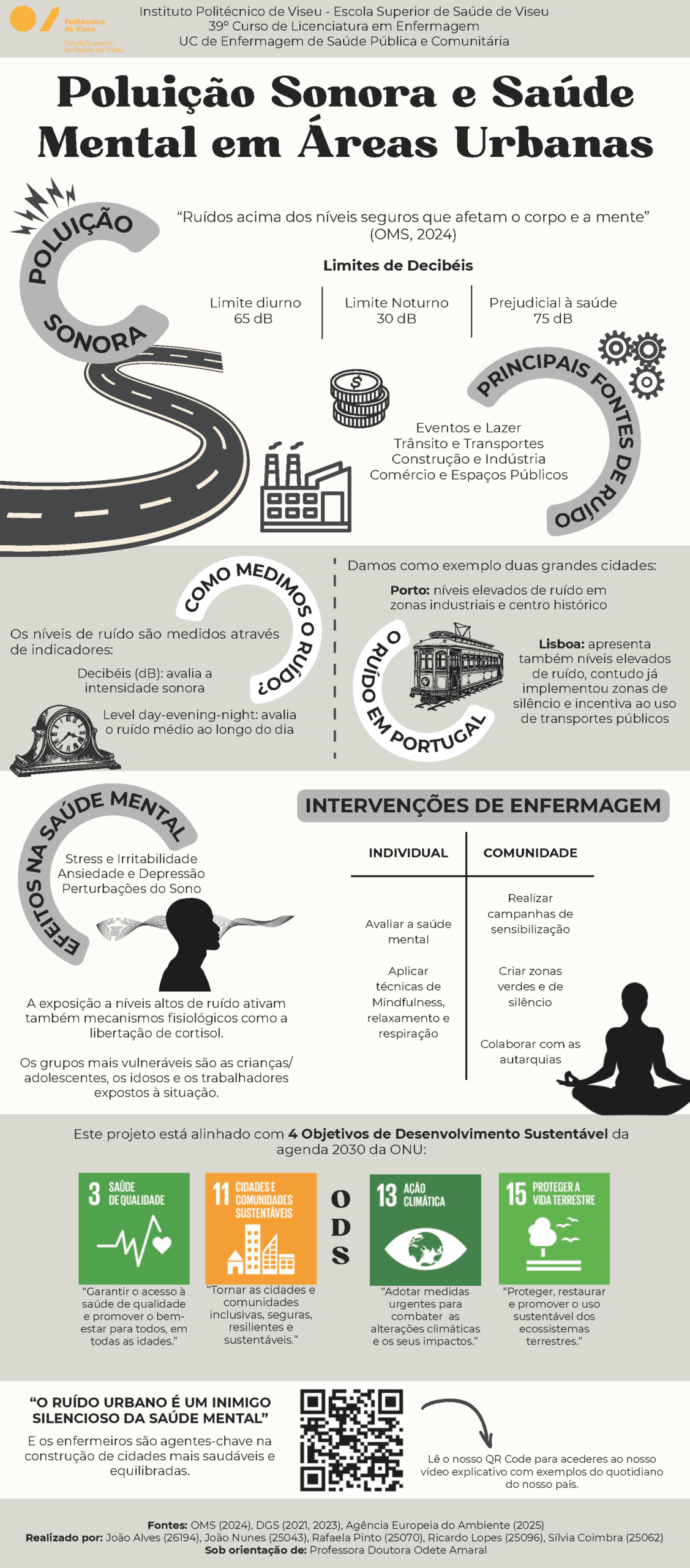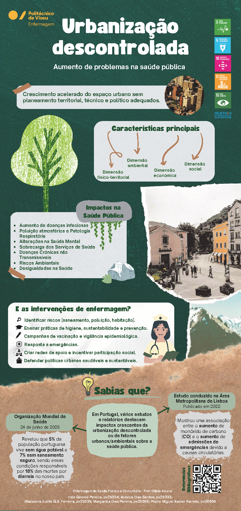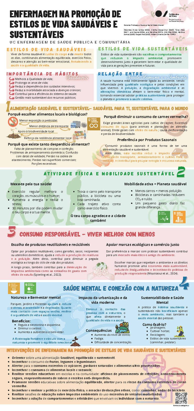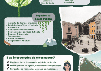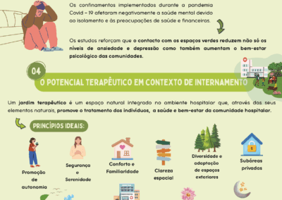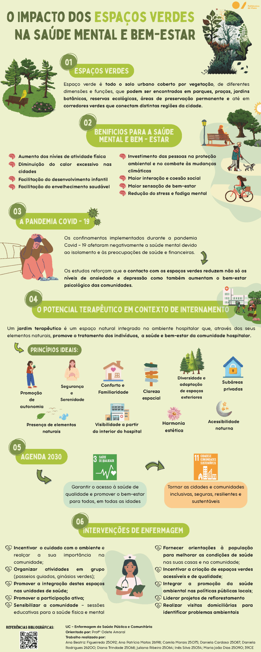 Trabalho realizado por estudantes na unidade curricular de Enfermagem de Saúde Pública e Comunitária refletindo o impacto dos espaços verdes na saúde mental.